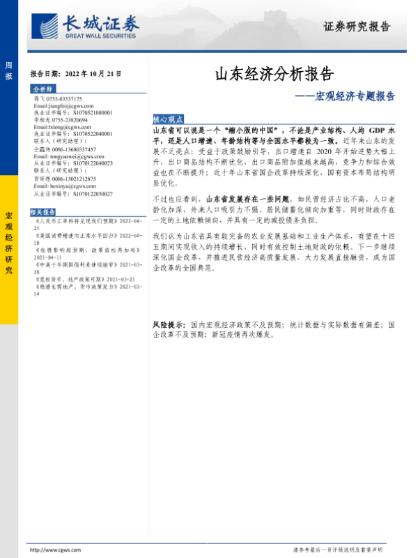 【长城证券】【20221021】宏观经济专题报告:山东经济分析报告-20页 行业研究