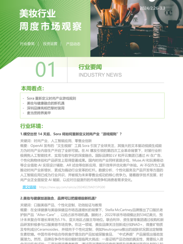【艾瑞数智】【20240226】2024年第6周:美妆行业周度市场观察-5页 行业研究