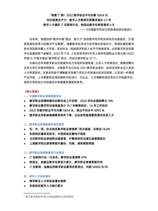 【智联招聘与北京大学汇丰商学院】【2022】中国数字劳动力供需演变研究报告-16页 行业研究