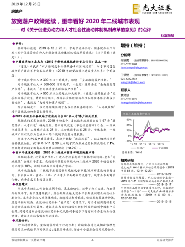 【光大证券】【20191226】对《关于促进劳动力和人才社会性流动体制机制改革的意见》的点评:放宽落户政策延续,重申看好2020年二线城市表现-2页 证券期货研究报告