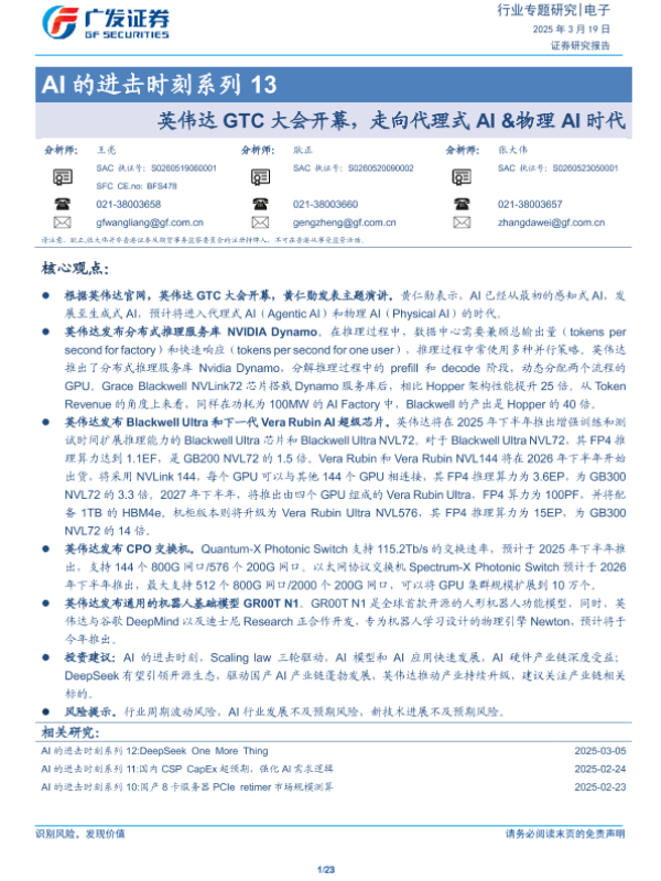 【广发证券】【20250319】AI的进击时刻系列13:英伟达GTC大会开幕,走向代理式AI&物理AI时代-23页 行业研究