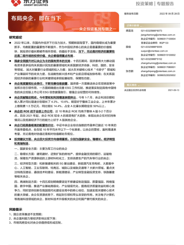 【东方证券】【20220928】央企投资系列专题之一:布局央企,即在当下-22页 行业研究