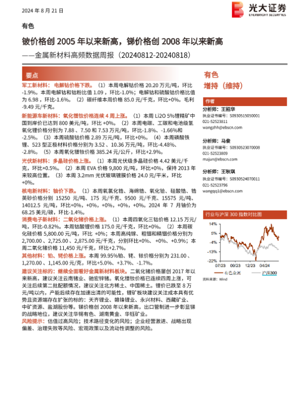 【光大证券】【20240821】金属新材料高频数据周报:铍价格创2005年以来新高,锑价格创2008年以来新高-25页 行业研究