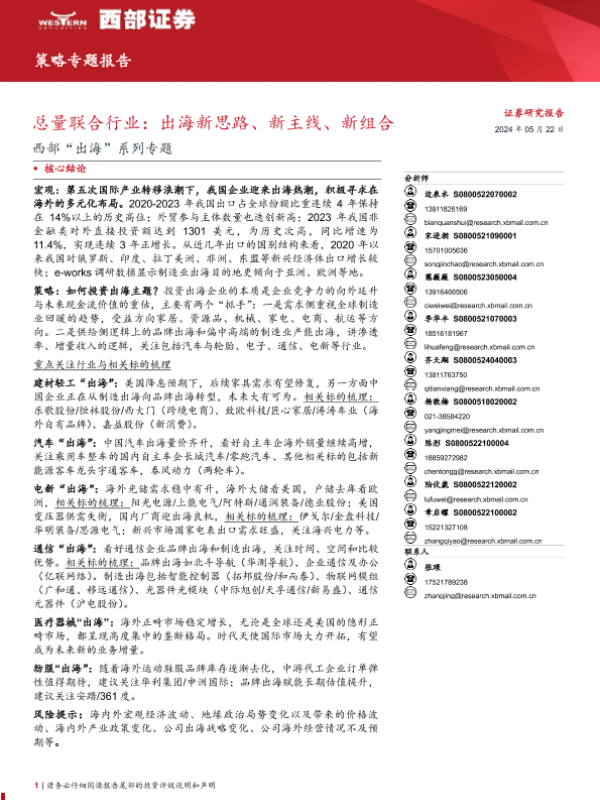 【西部证券】【20240522】西部‘出海’系列专题-总量联合行业:出海新思路、新主线、新组合-34页 行业研究
