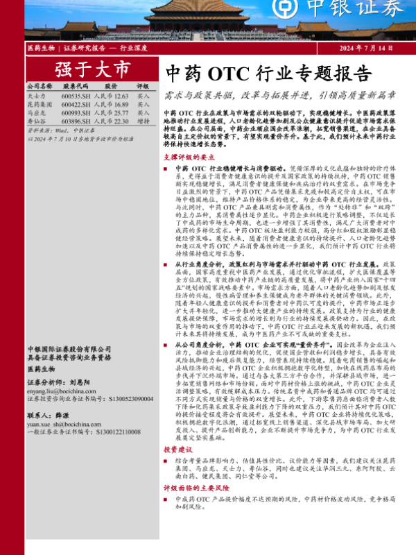 【中银证券】【20240714】中药OTC行业专题报告:需求与政策共驱,改革与拓展并进,引领高质量新篇章-58页 行业研究