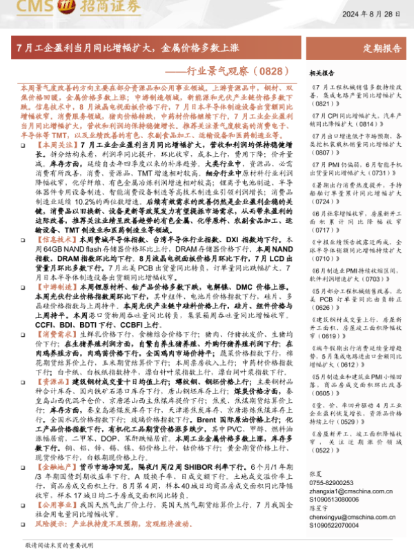 【海通证券】【20240828】行业景气观察:7月工企盈利当月同比增幅扩大,金属价格多数上涨-33页 行业研究