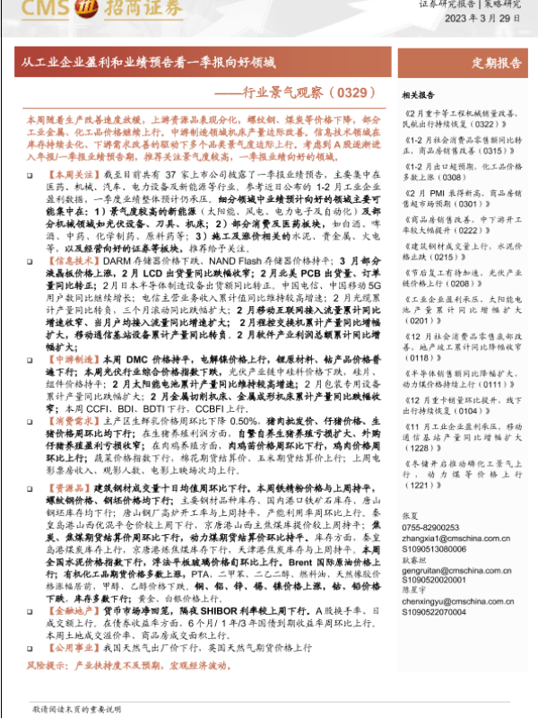 【海通证券】【20230329】行业景气观察:从工业企业盈利和业绩预告看一季报向好领域-31页 行业研究