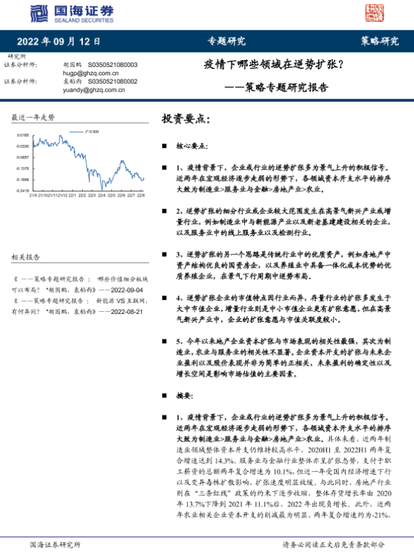 【国海证券】【20220912】疫情下哪些领域在逆势扩张?——策略专题研究报告-21页 行业研究