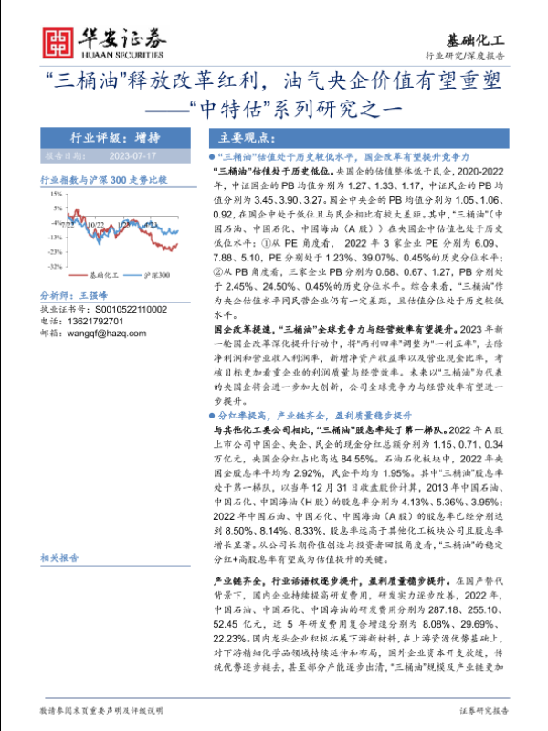【华安证券】【20230717】基础化工行业“中特估”系列研究报告:“三桶油”释放改革红利,油气央企价值有望重塑-26页 行业研究