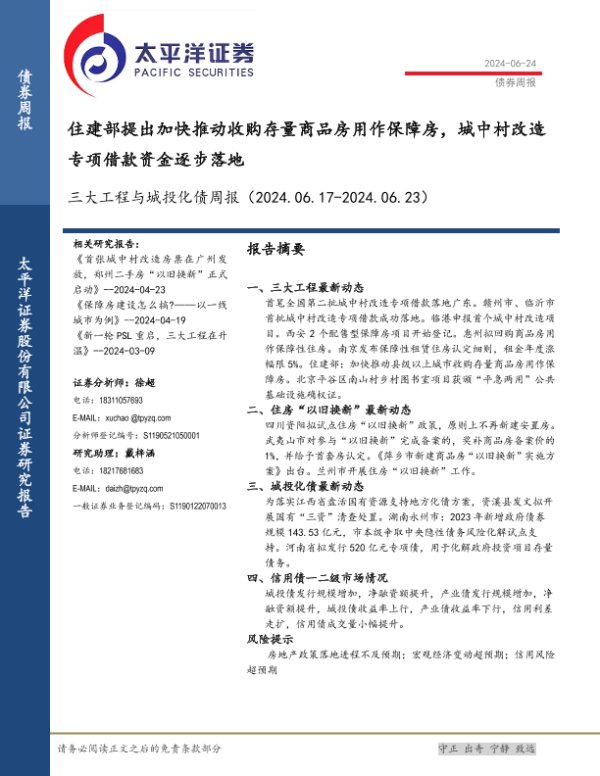 【太平洋证券】【20240624】三大工程与城投化债:住建部提出加快推动收购存量商品房用作保障房,城中村改造专项借款资金逐步落地-19页 行业研究