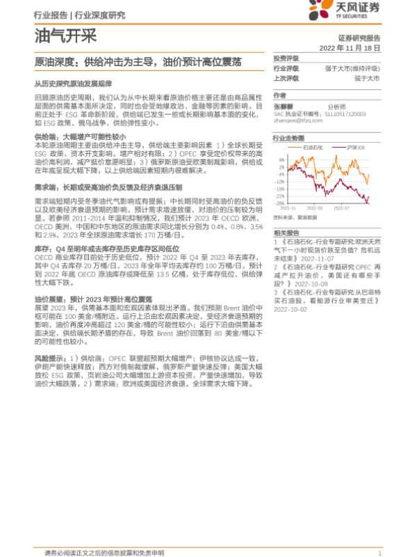 【天风证券】【20221118】油气开采行业深度研究:原油深度,供给冲击为主导,油价预计高位震荡-24页 行业研究