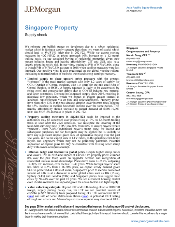 【J.P. Morgan】【20210826】新加坡房地产:供给冲击-43页 行业研究