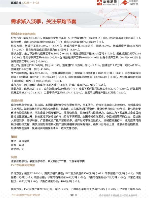 【华泰期货】【202511】氯碱月报 | 需求渐入淡季,关注采购节奏-29页 证券期货研究报告