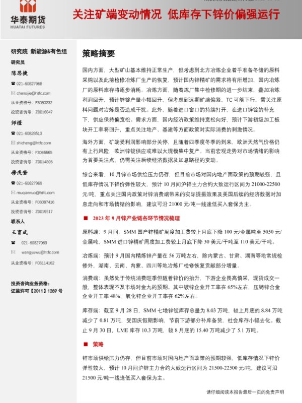 【华泰期货】【20231008】锌月报:关注矿端变动情况,低库存下锌价偏强运行-22页 行业研究