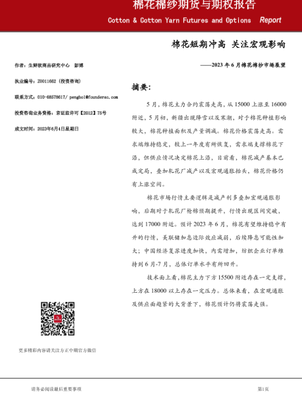 【方正中期期货】【20230604】棉花棉纱期货与期权报告-28页 行业研究