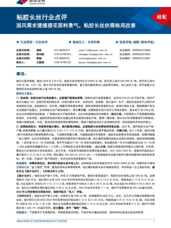 【国信证券】【20240409】粘胶长丝行业点评:国风需求提振提花面料景气,粘胶长丝供需格局改善-16页 行业研究