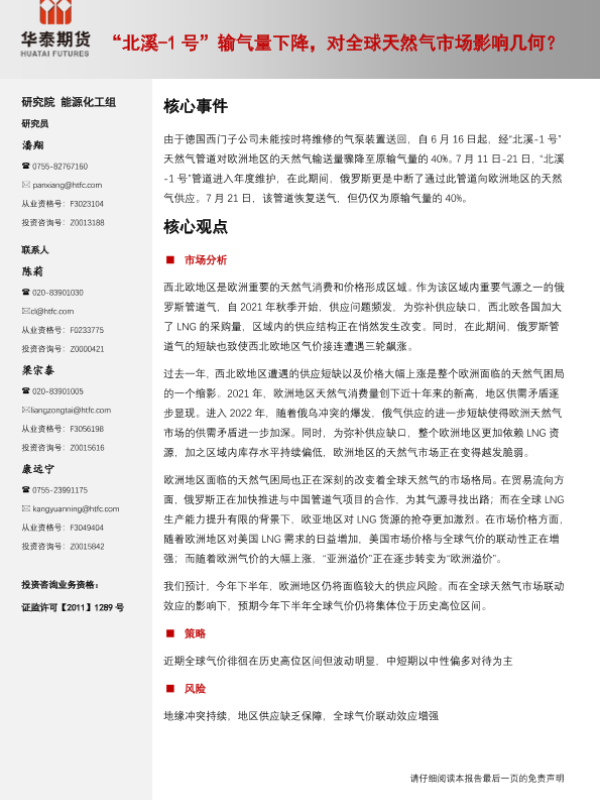 【华泰期货】【20220725】天然气专题报告:“北溪_1号”输气量下降,对全球天然气市场影响几何?-26页 行业研究