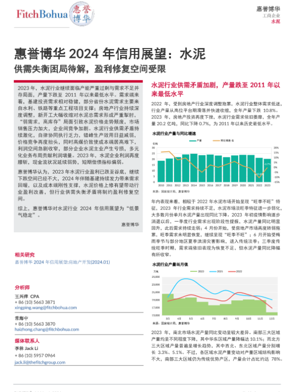 【惠誉博华】【20240314】惠誉博华2024年信用展望:水泥-9页 行业研究
