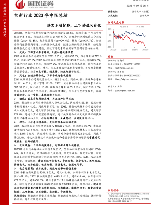 【国联证券】【20230905】电新行业2023年中报总结:供需矛盾转移,上下游盈利分化-58页 行业研究