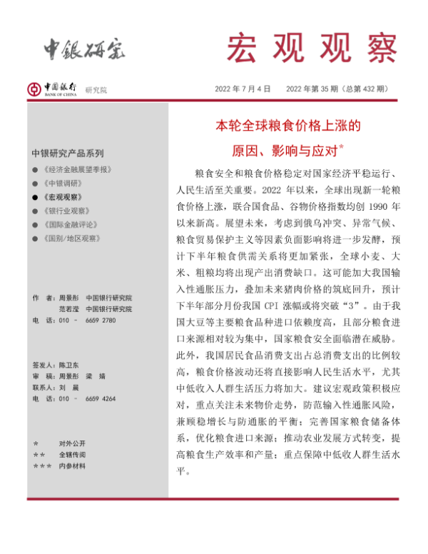 【中国银行研究院】【20220704】本轮全球粮食价格上涨的原因、影响与应对-21页 行业研究