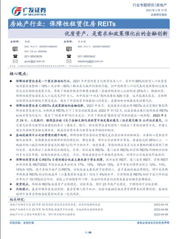 【广发证券】【20230419】地产行业:保障性租赁住房REITs-优质资产,是需求和政策催化出的金融创新-68页 行业研究