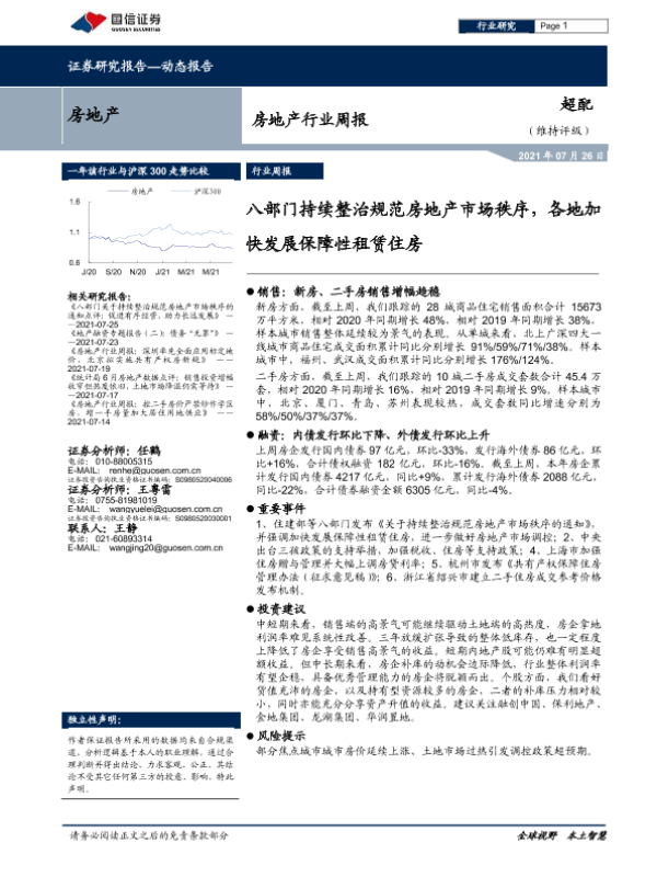 【国信证券】【20210726】房地产行业周报:八部门持续整治规范房地产市场秩序,各地加快发展保障性租赁住房-9页 行业研究