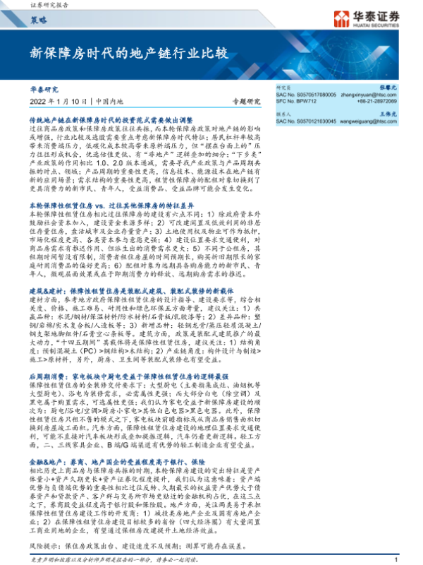 【华泰证券】【20220110】专题研究:新保障房时代的地产链行业比较-24页 行业研究