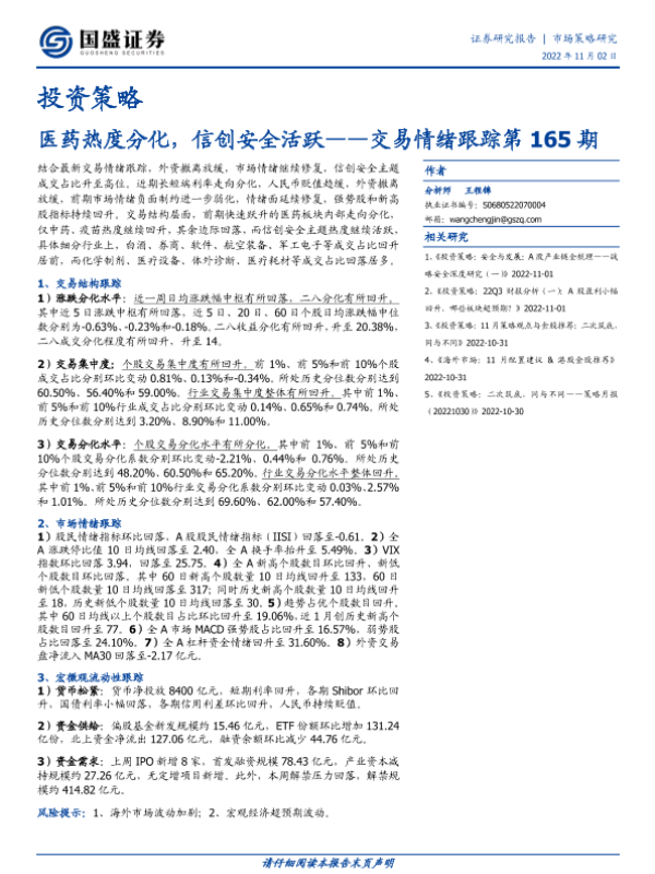 【国盛证券】【20221102】交易情绪跟踪第165期:医药热度分化,信创安全活跃-16页 行业研究