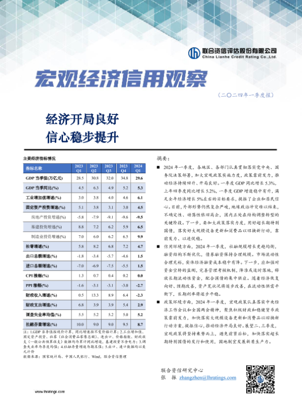 【联合资信】【20240101】经济开局良好,信心稳步提升--宏观经济信用观察季报(2024年一季度报)-17页 行业研究