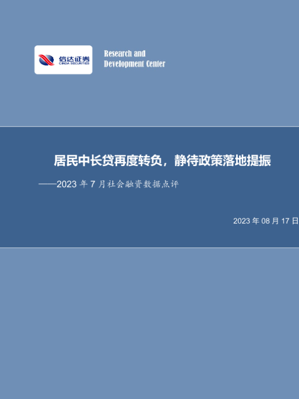 【信达证券】【20230817】2023年7月社会融资数据点评:居民中长贷再度转负,静待政策落地提振-11页 行业研究