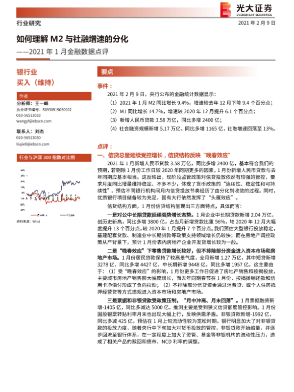 【光大证券】【20210209】2021年1月金融数据点评:如何理解M2与社融增速的分化-4页 行业研究
