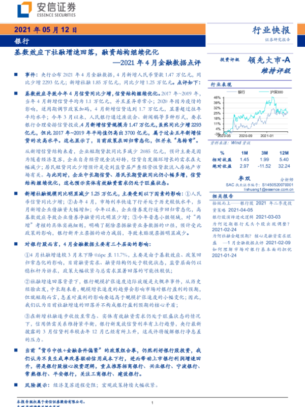 【安信证券】【20210512】银行2021年4月金融数据点评-4页 行业研究