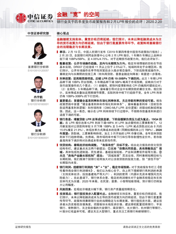 【中信证券】【20200220】银行业关于四季度货币政策报告和2月LPR报价的点评-3页 行业研究