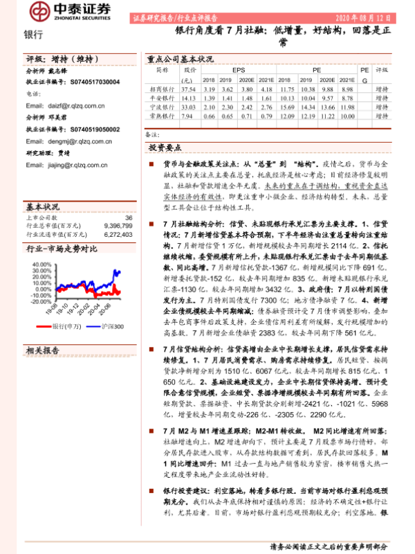 【中泰证券】【20200812】银行角度看7月社融:低增量,好结构,回落是正常-13页 行业研究