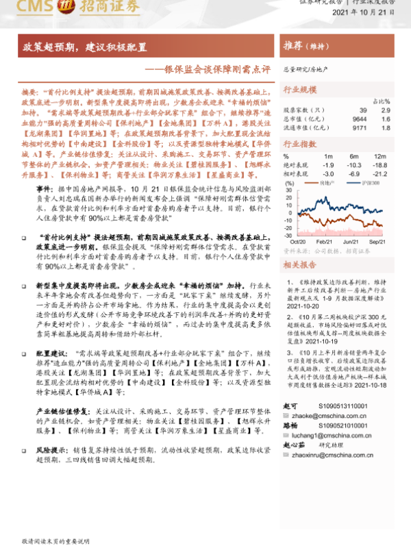 【海通证券】【20211021】房地产行业:银保监会谈保障刚需点评:政策超预期,建议积极配置-2页 证券期货研究报告