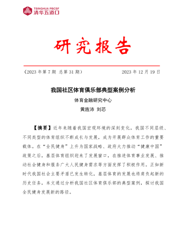 【体育金融研究中心】【20231219】2023我国社区体育俱乐部典型案例分析报告-25页 行业研究