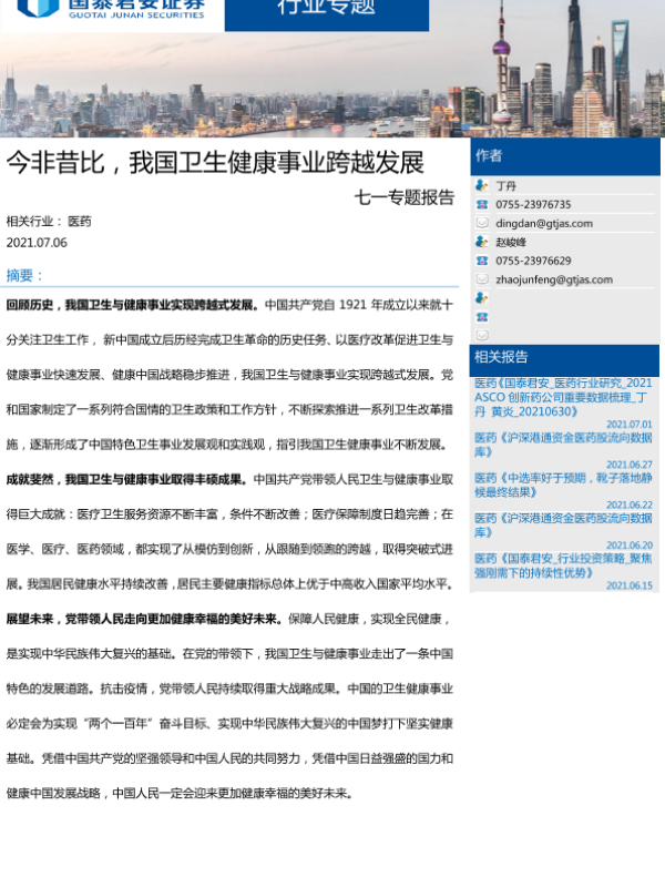 【国泰君安证券】【20210706】七一专题报告:今非昔比,我国卫生健康事业跨越发展-17页 行业研究