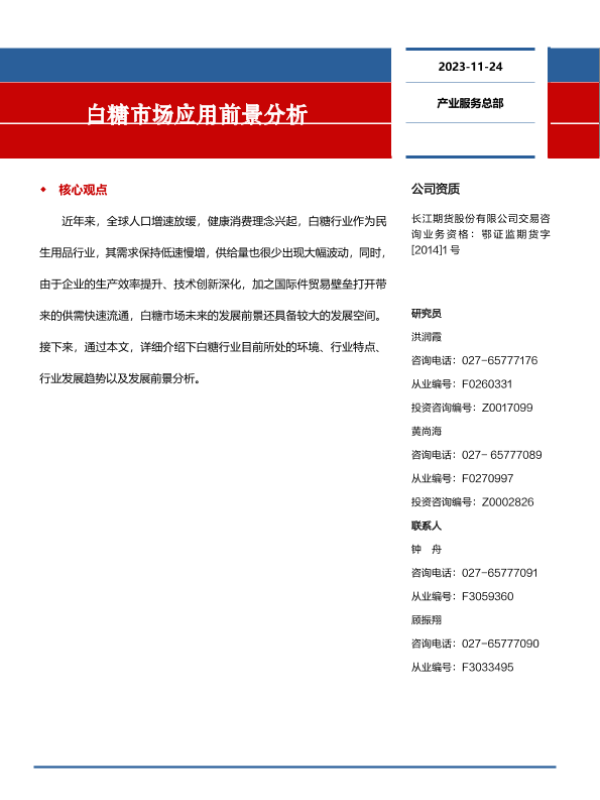 【长江期货】【20231124】白糖市场应用前景分析-11页 行业研究
