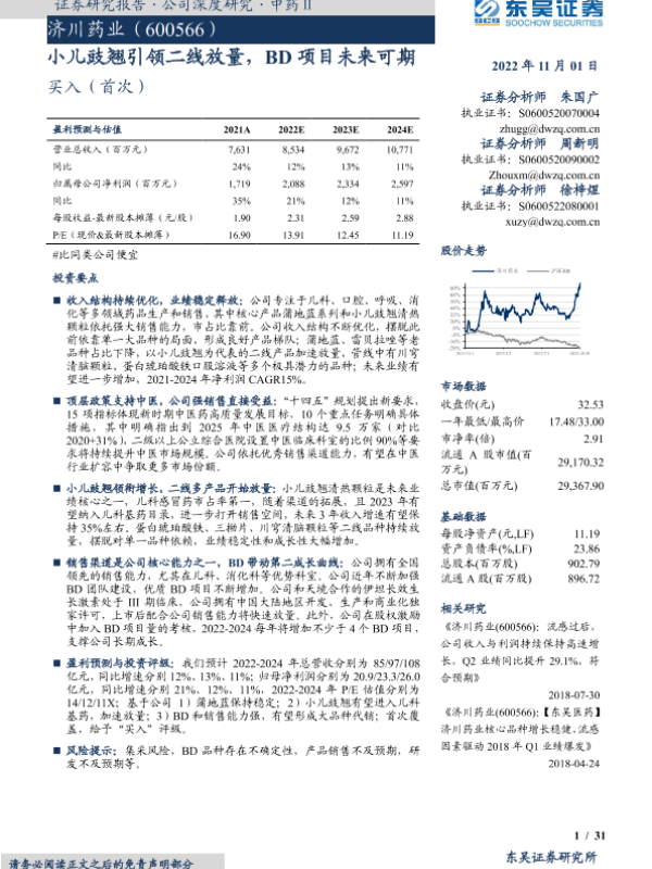 【东吴证券】【20221101】小儿豉翘引领二线放量,BD项目未来可期-31页 行业研究