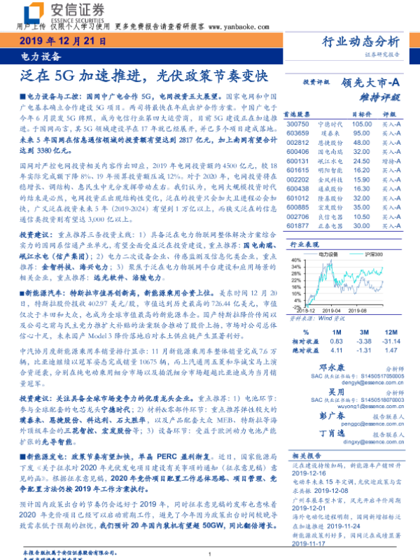 【安信证券】【20191221】电力设备行业动态分析-19页 证券期货研究报告