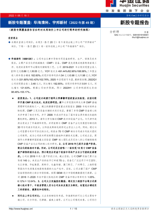 【华金证券】【20220518】新股专题覆盖:华海清科、宇邦新材(2022年第49期)-15页 行业研究