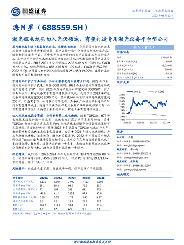 【国盛证券】【20220612】海目星(688559.SH)激光锂电龙头切入光伏领域,有望打造专用激光设备平台型公司-23页 行业研究