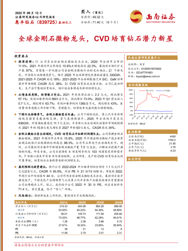 【西南证券】【20220812】全球金刚石微粉龙头,CVD培育钻石潜力新星-33页 行业研究
