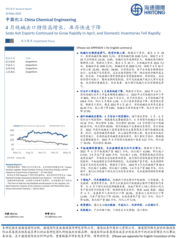 【海通国际】【20220524】4月纯碱出口持续高增长,库存快速下降-14页 行业研究