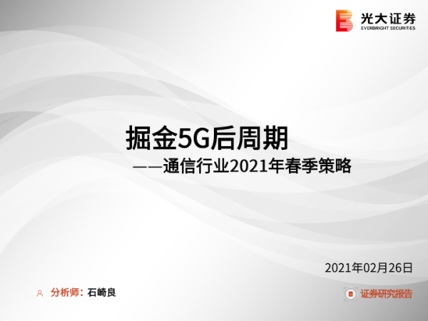 【光大证券】【20210226】通信行业2021年春季策略:掘金5G后周期-22页 行业研究