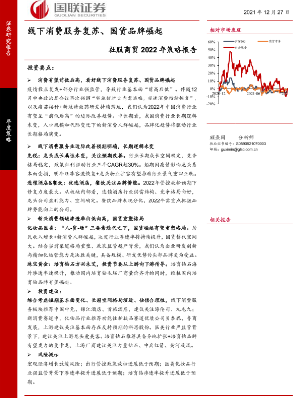 【国联证券】【20211227】社服商贸行业2022年策略报告:线下消费服务复苏、国货品牌崛起-45页 行业研究