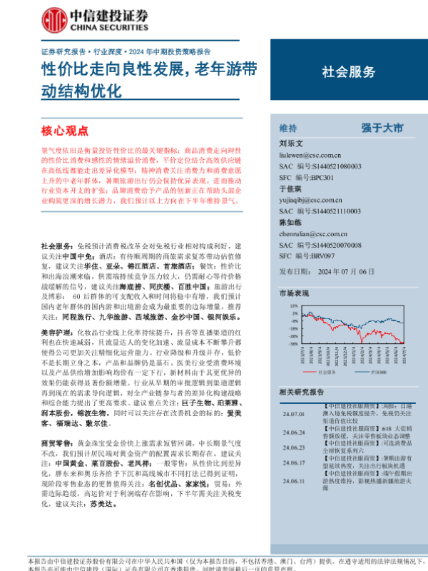 【中信建投证券】【20240706】社会服务行业深度·2024年中期投资策略报告:性价比走向良性发展,老年游带动结构优化-46页 行业研究