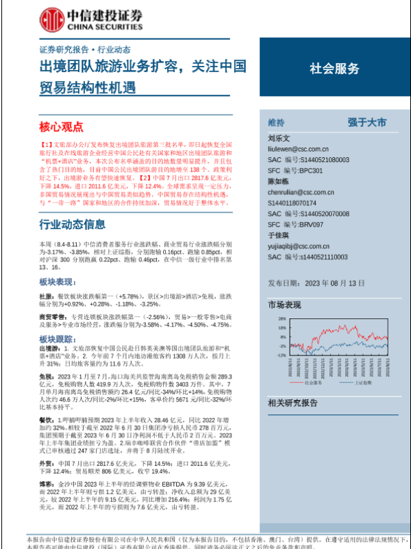 【中信建投证券】【20230813】社会服务行业:出境团队旅游业务扩容,关注中国贸易结构性机遇-29页 行业研究