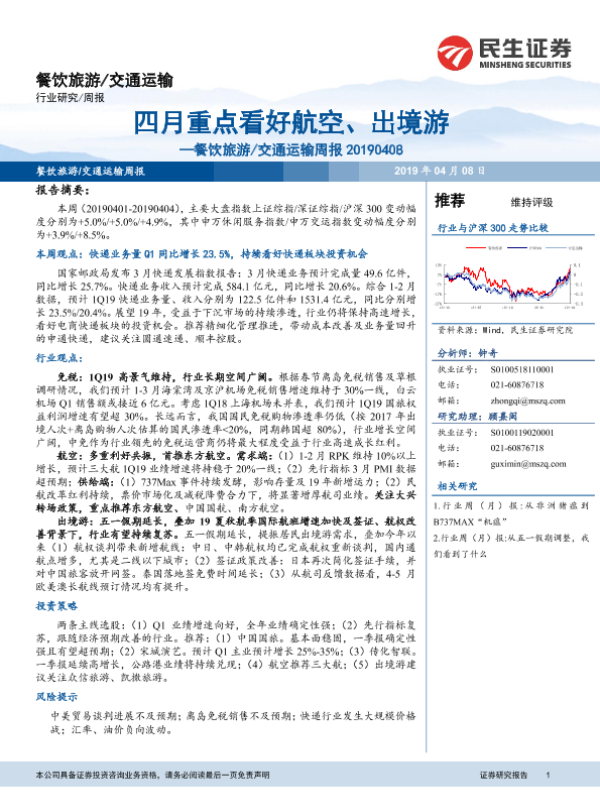 【民生证券】【20190408】四月重点看好航空、出境游-16页 行业研究