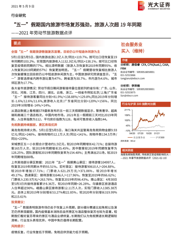 【光大证券】【20210509】2021年劳动节旅游数据点评-2页 行业研究